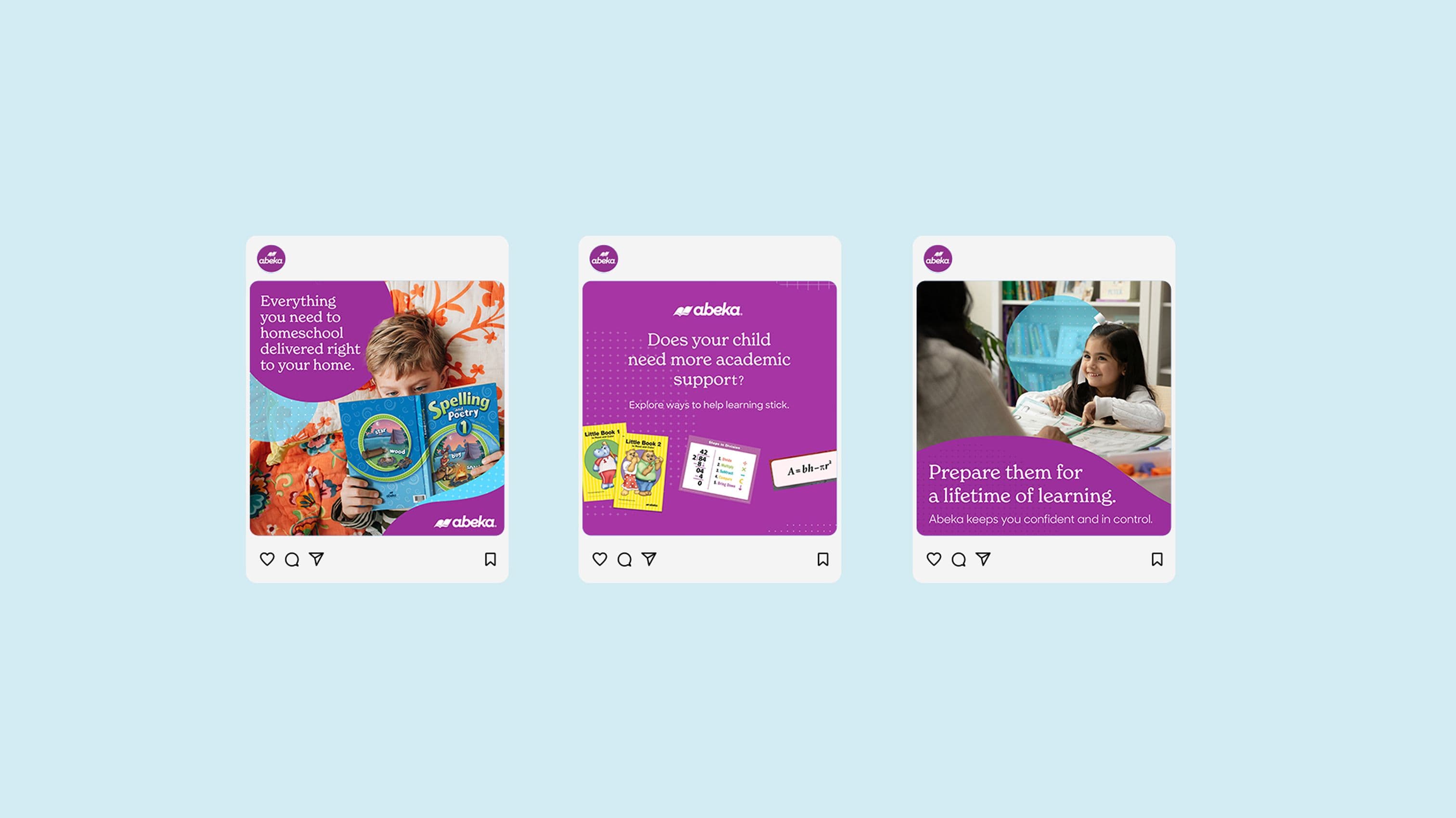 Recognizing the opportunity to engage non-traditional audiences (beyond homeschooling parents or Christian schools), the Lewis team created a brand new platform for Abeka—Learning For Life. The new platform allowed our team to develop messaging that focused on the child’s future success as a key motivator for parents, along with emphasis on character building and strong community values.