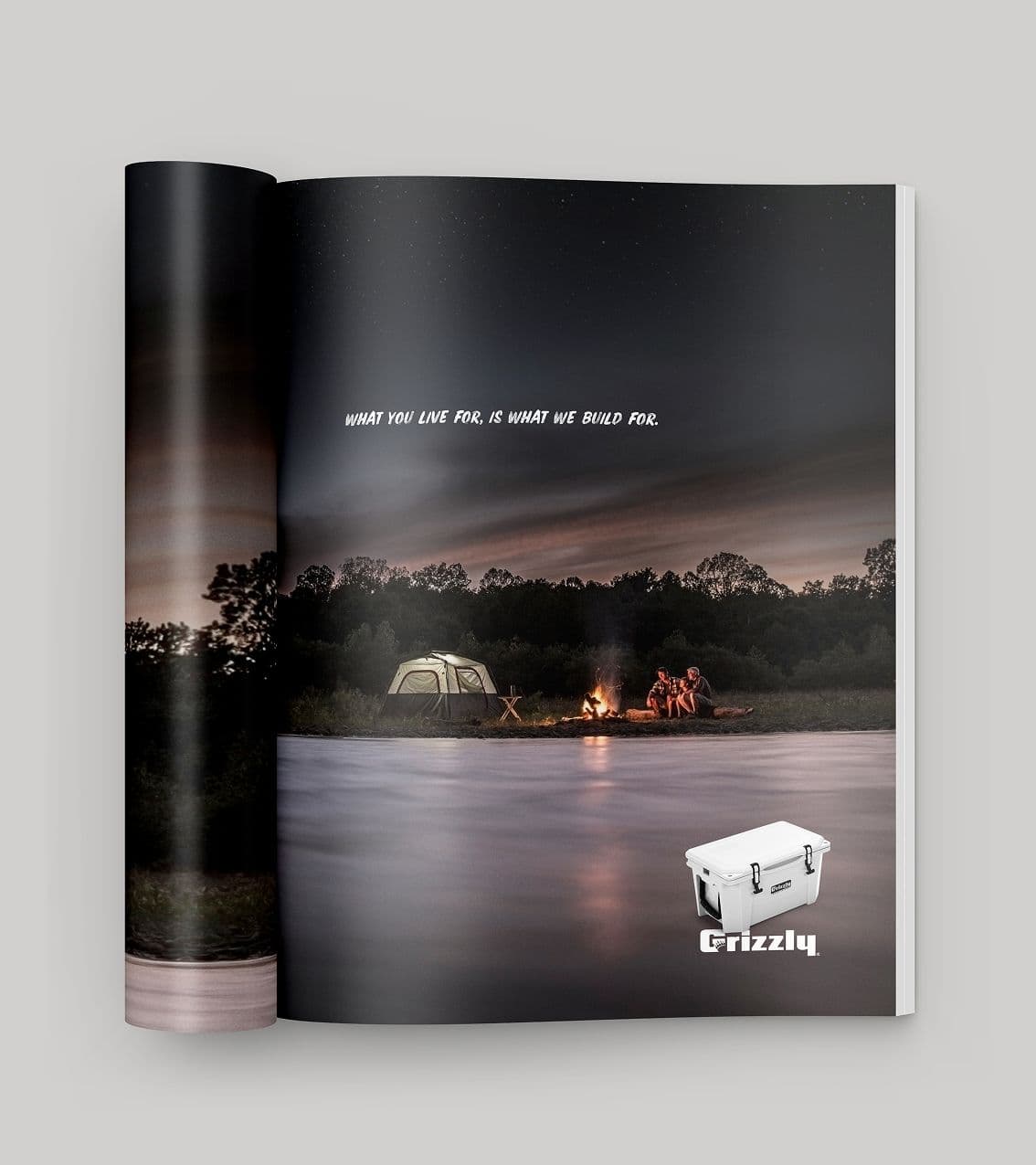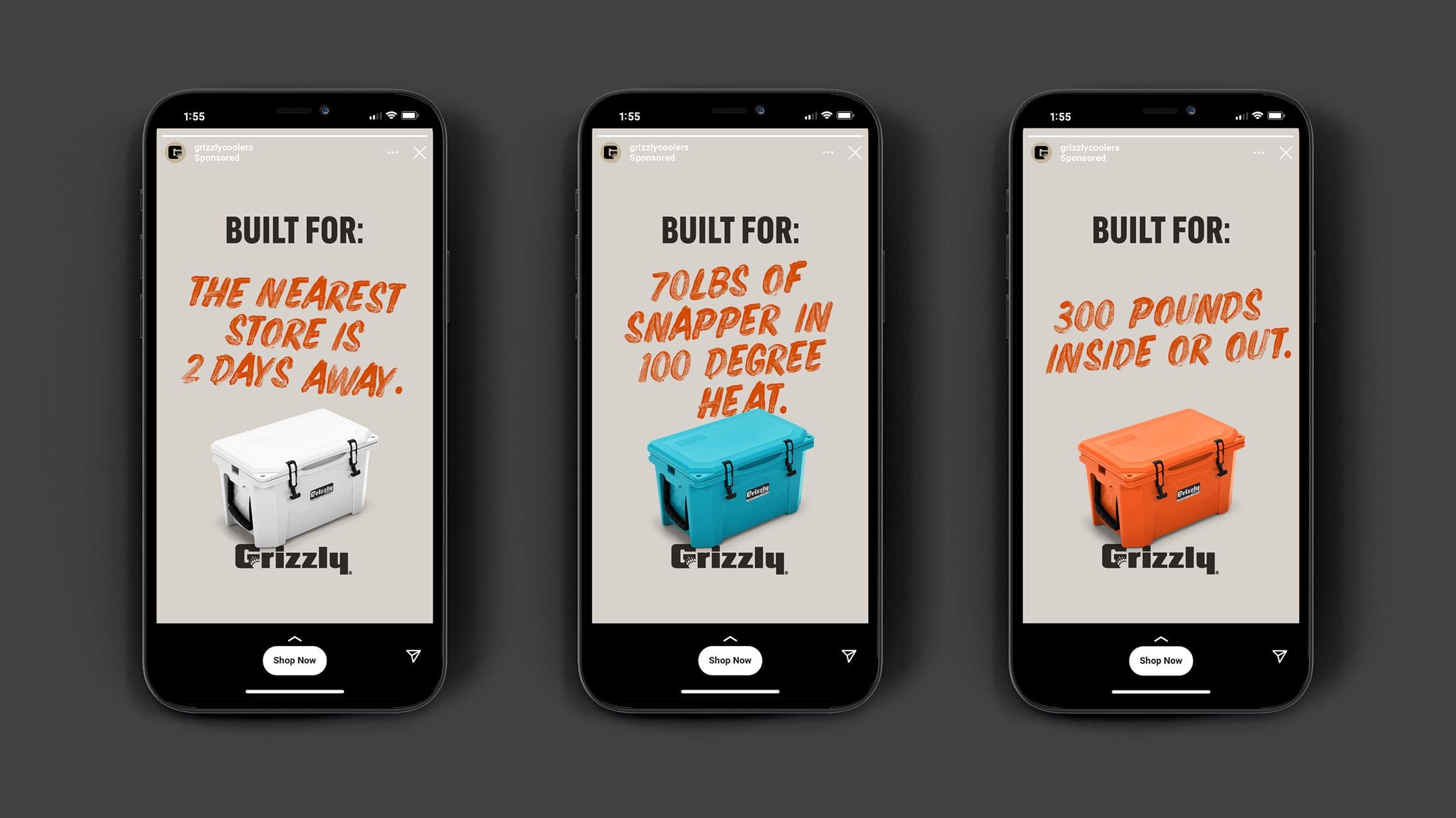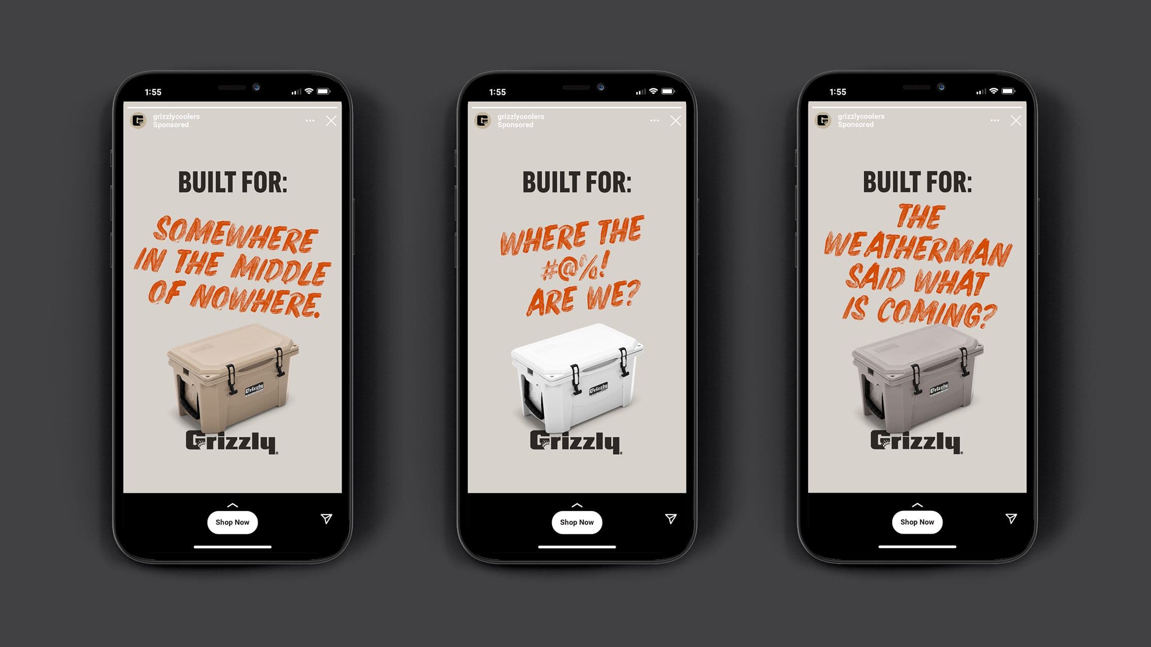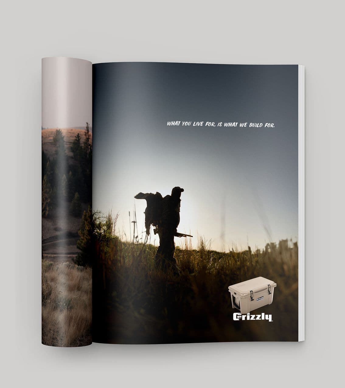 Grizzly was one of the early creators of rotomolded coolers with incredibly tough construction. In fact, it was one of the first companies whose coolers were certified IGBC Bear-Resistant. Grizzly’s products were deeply trusted by a tight circle of hunters and outdoor enthusiasts, but weren’t as well known as competitor Yeti in the larger consumer market. Grizzly asked us to grow the brand’s reputation and increase engagement in order to set the stage for future sales growth.