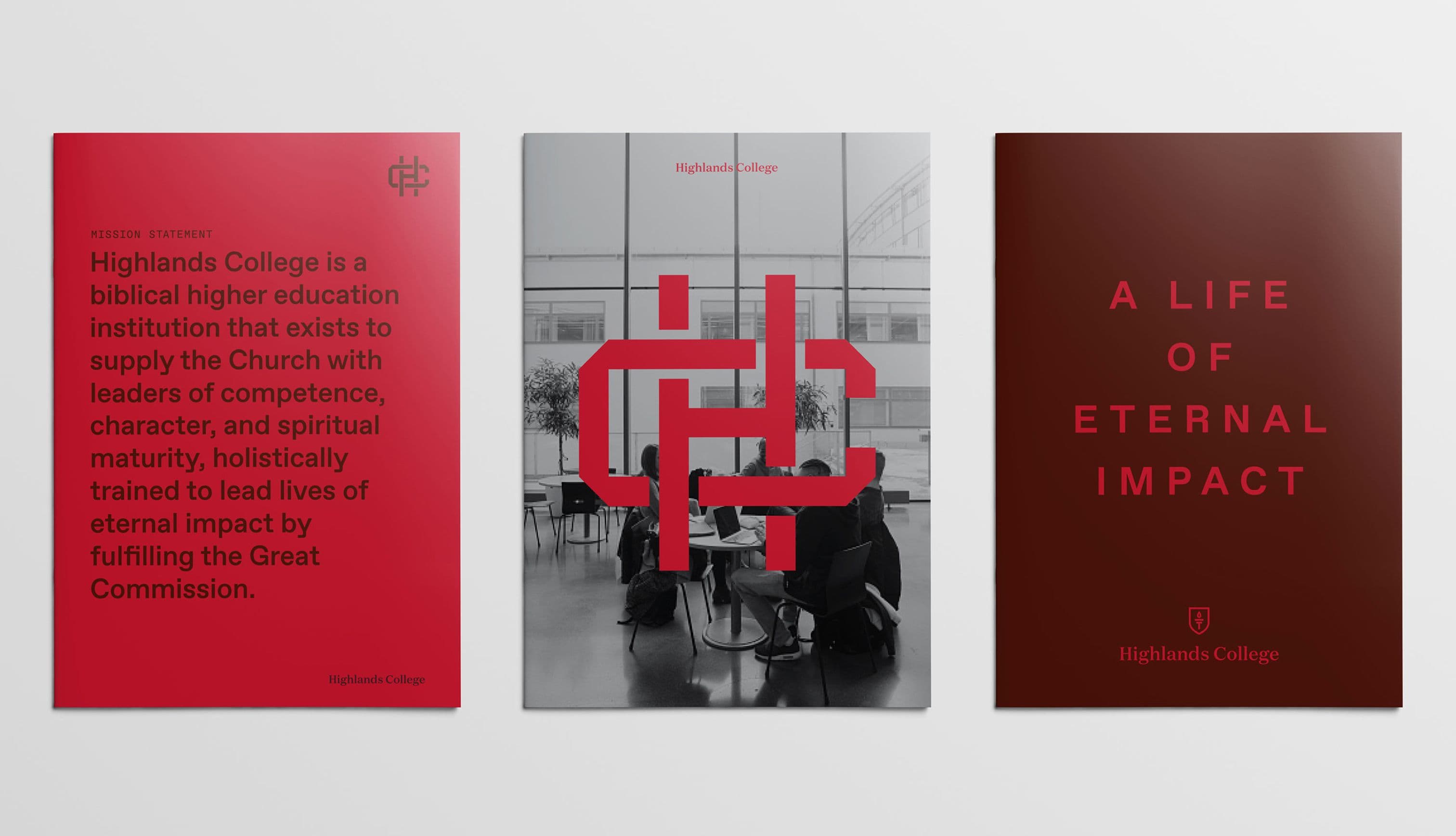 Highlands College isn’t your typical college experience. But that doesn’t mean the students don’t yearn for a taste of those traditional trappings as they pursue their calling. Classic collegiate elements filtered through a modern lens resulted in a distinctive brand that students could take as their own as they pursue their “Life of eternal impact.”