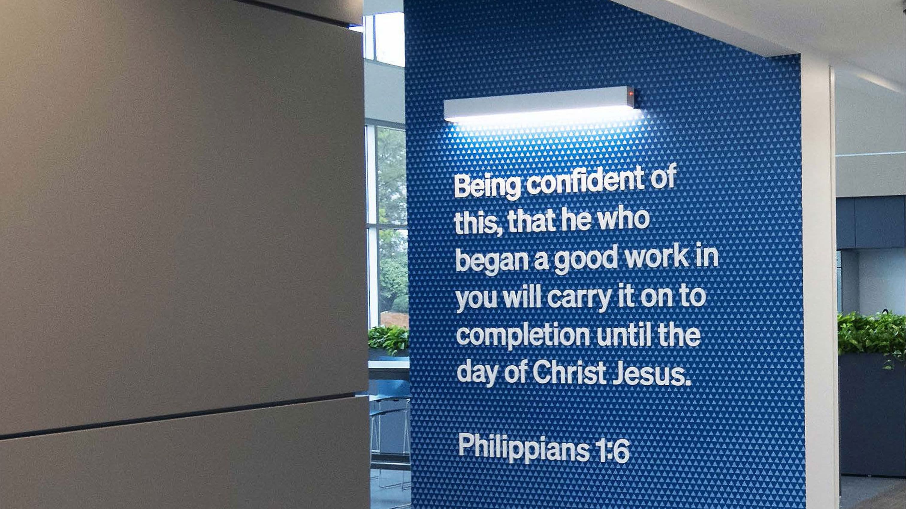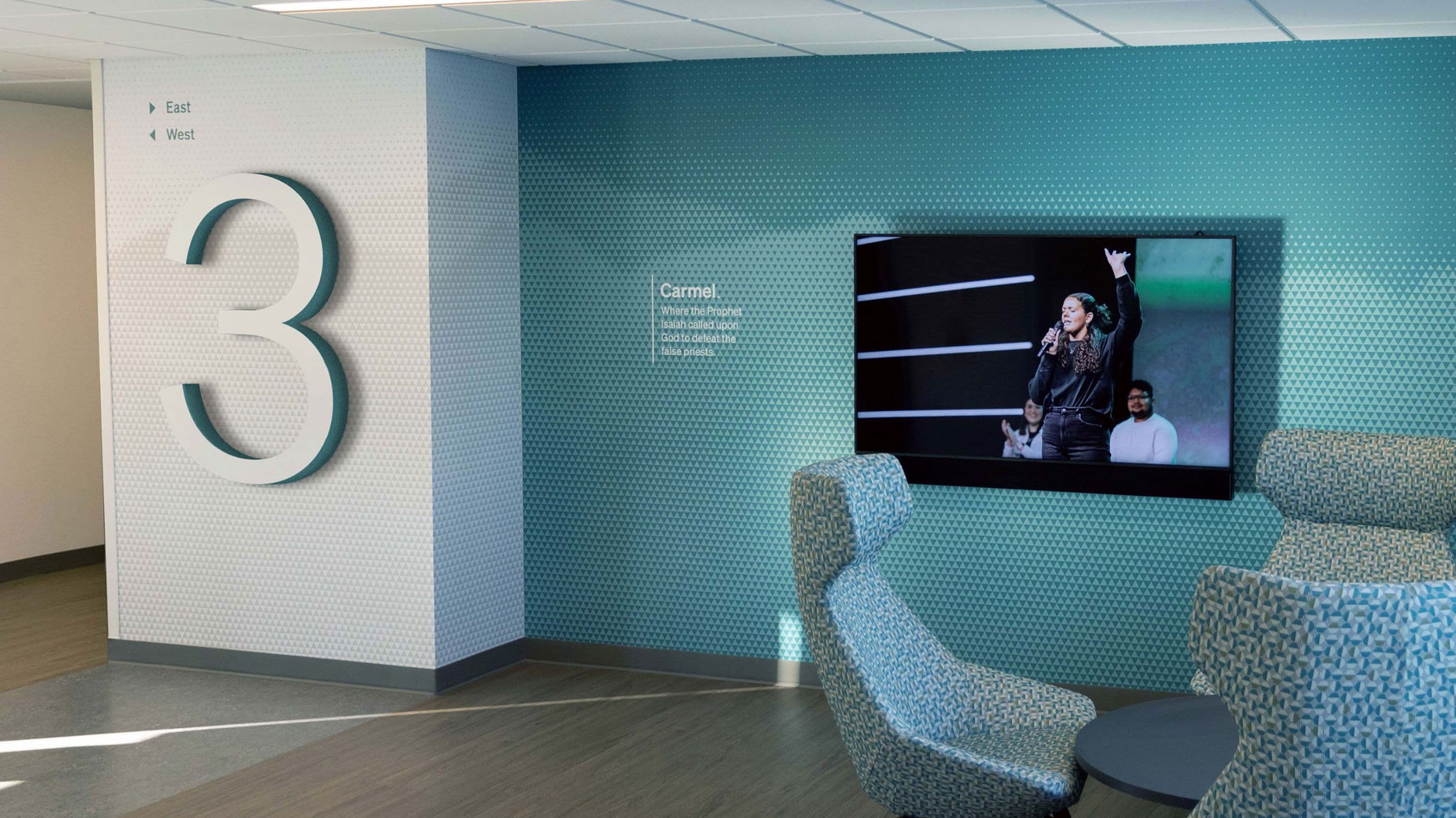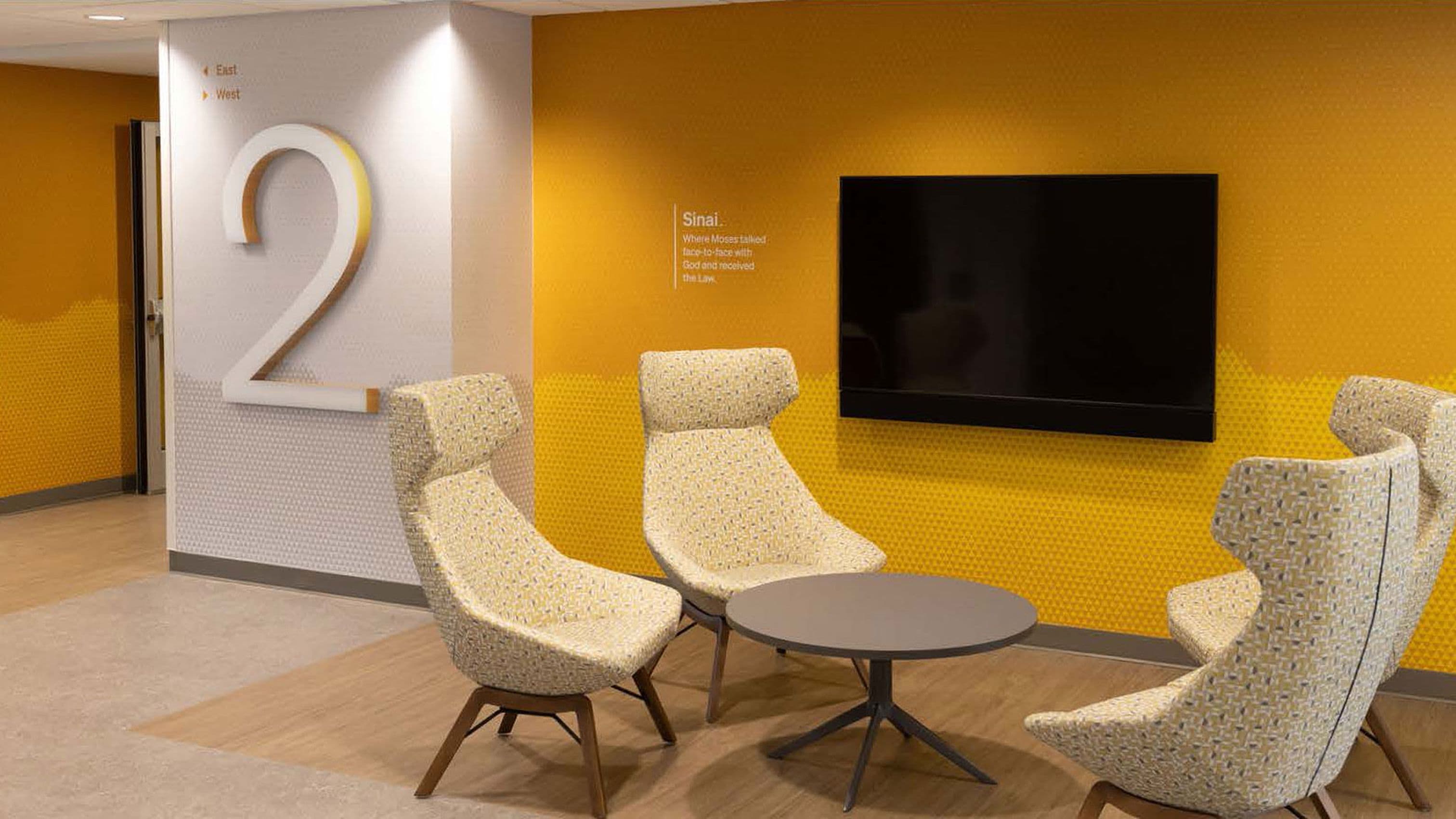 One of the most significant additions to the new Highlands College was its first-ever on-campus residence hall. With five floors, the dorms didn’t just require interior branding, but wayfinding that easily distinguished each of the floors. Drawing inspiration from the Bible, we named each floor after a different mountain where man encountered the Holy Divine, echoing the spiritual journey of the student. Distinctive colors, quotes, and minimalist, modernist patterns ensured that each floor was instantly identifiable as students acclimated to their new home.