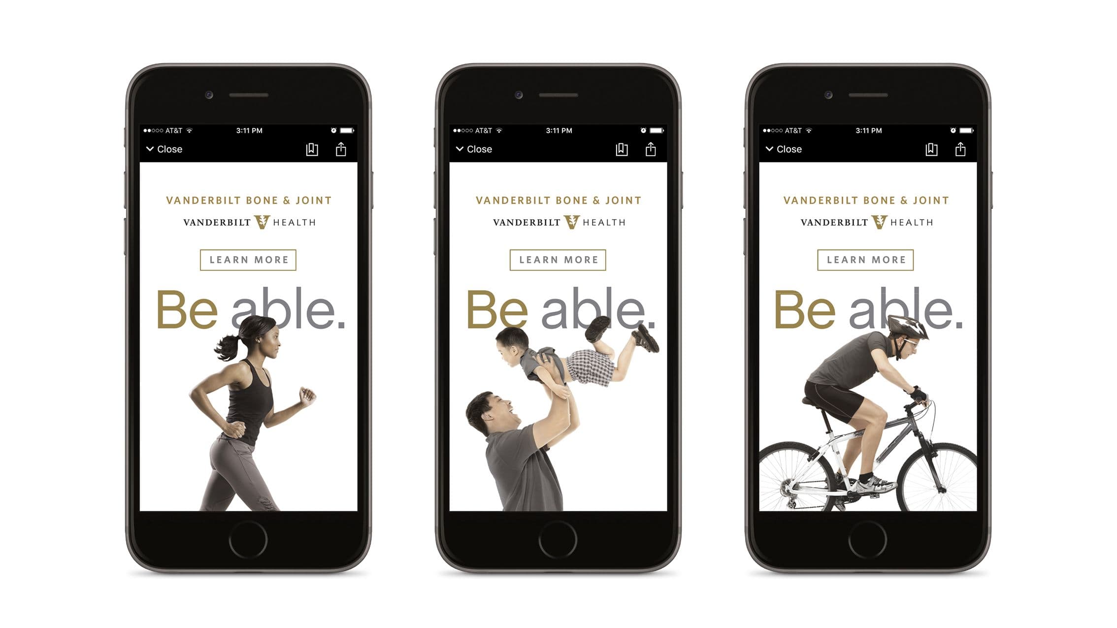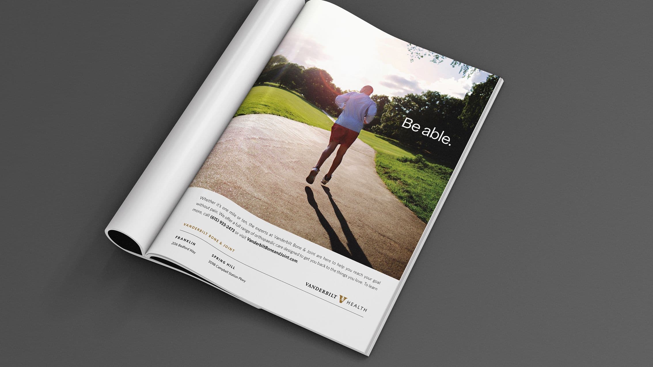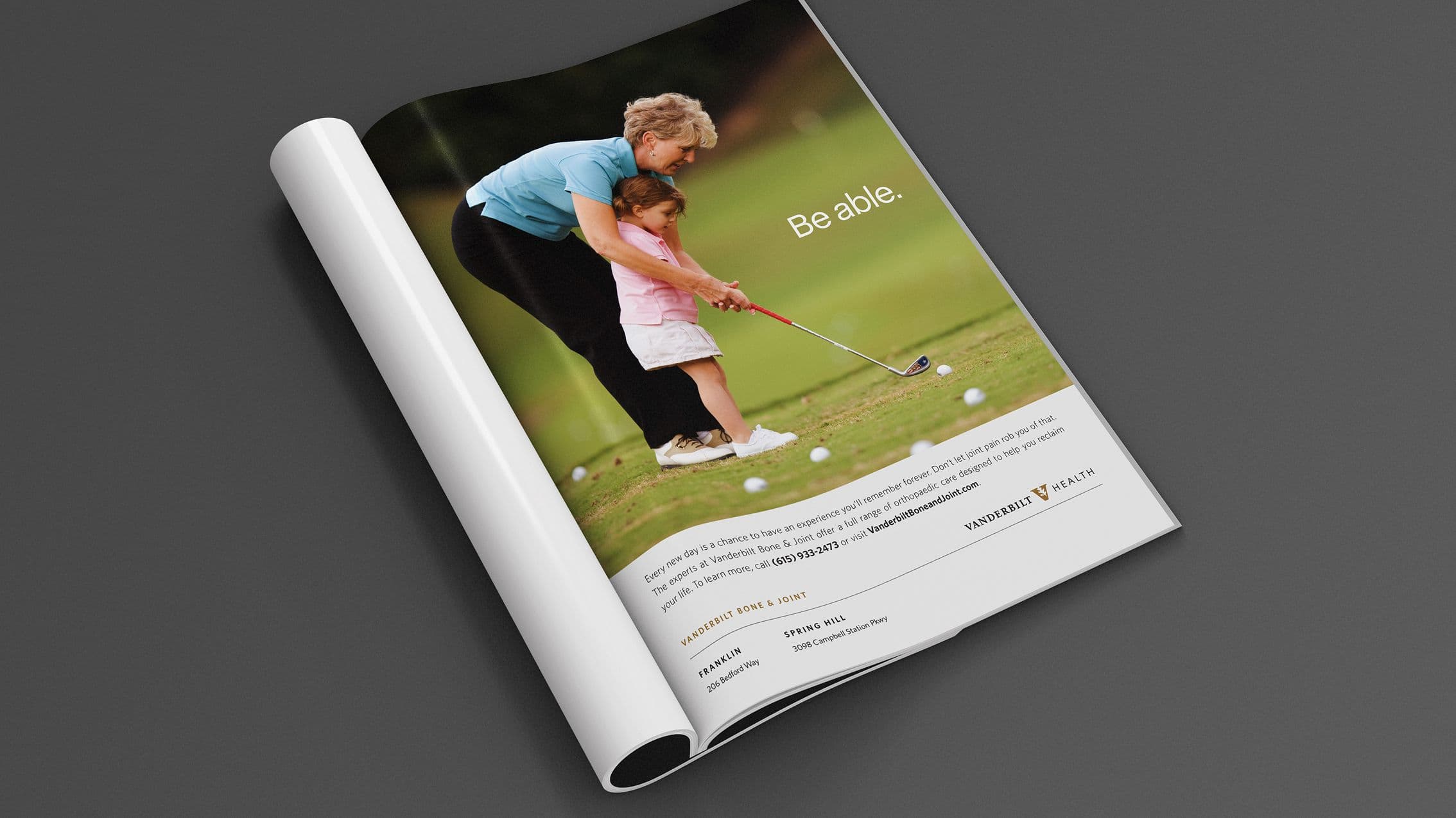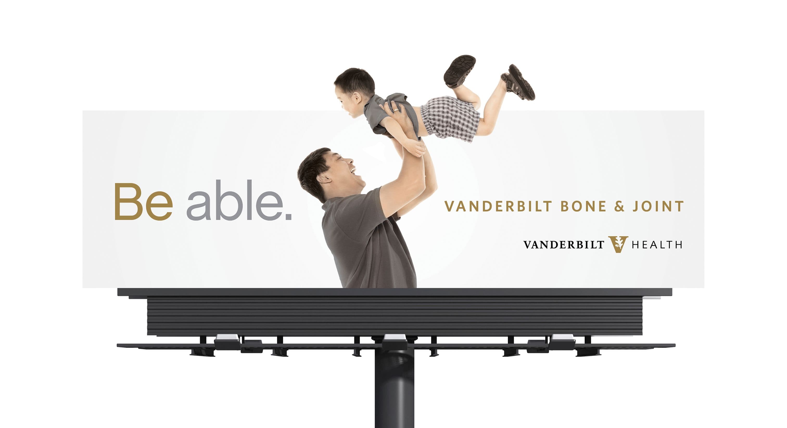For the Vanderbilt Health Bone and Joint Clinic, we created a campaign centered around a powerful, human truth: the ability to move freely is something people often take for granted–until they can't. "Be Able" became a rallying cry, celebrating the everyday victories that orthopaedic care makes possible. Whether it's returning to the field, the garden, or simply a walk around the block, the campaign spotlighted how Vanderbilt's expert care empowers patients of all ages to get back to doing what they love–stronger, faster, and more confidently than before.