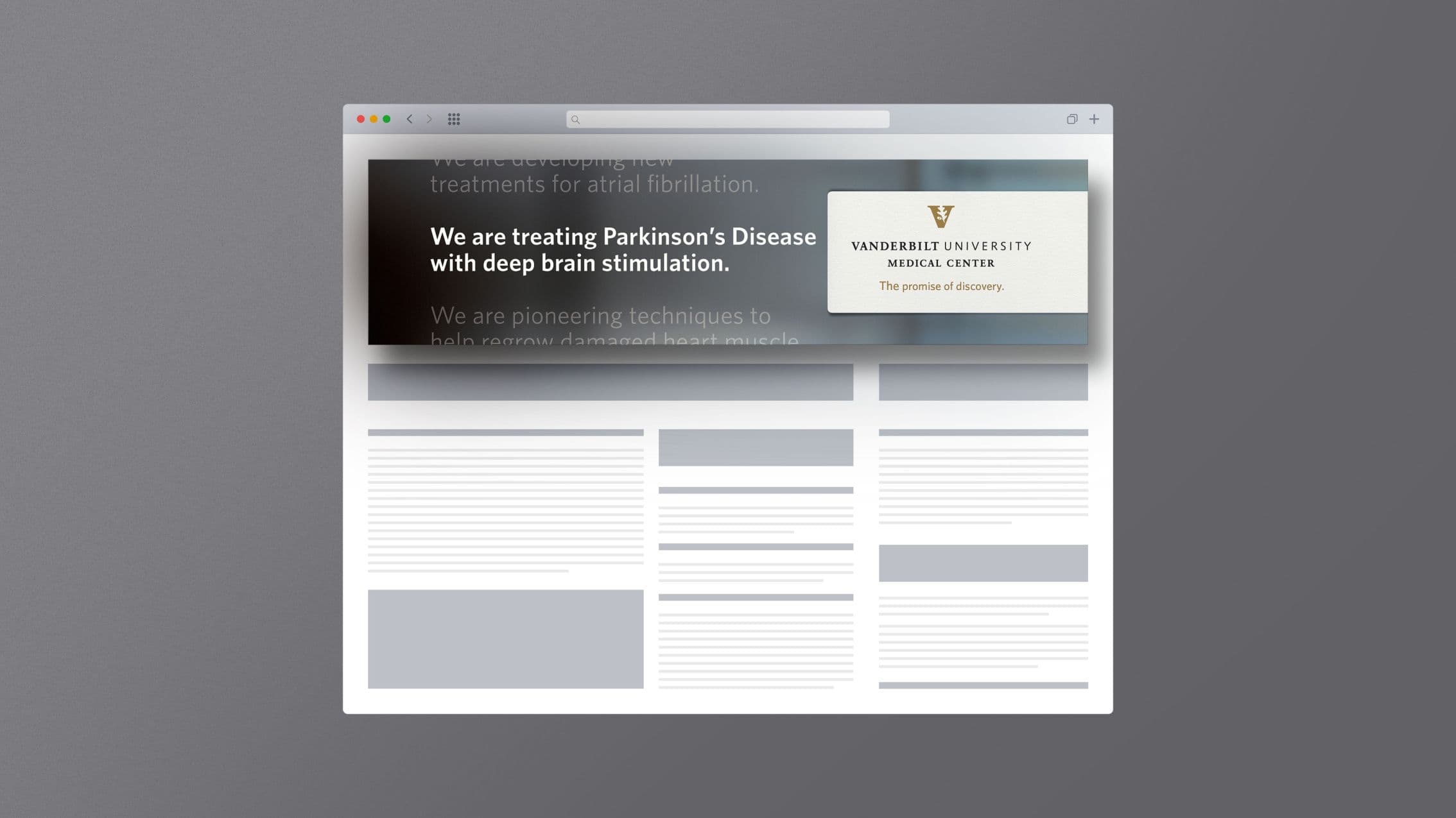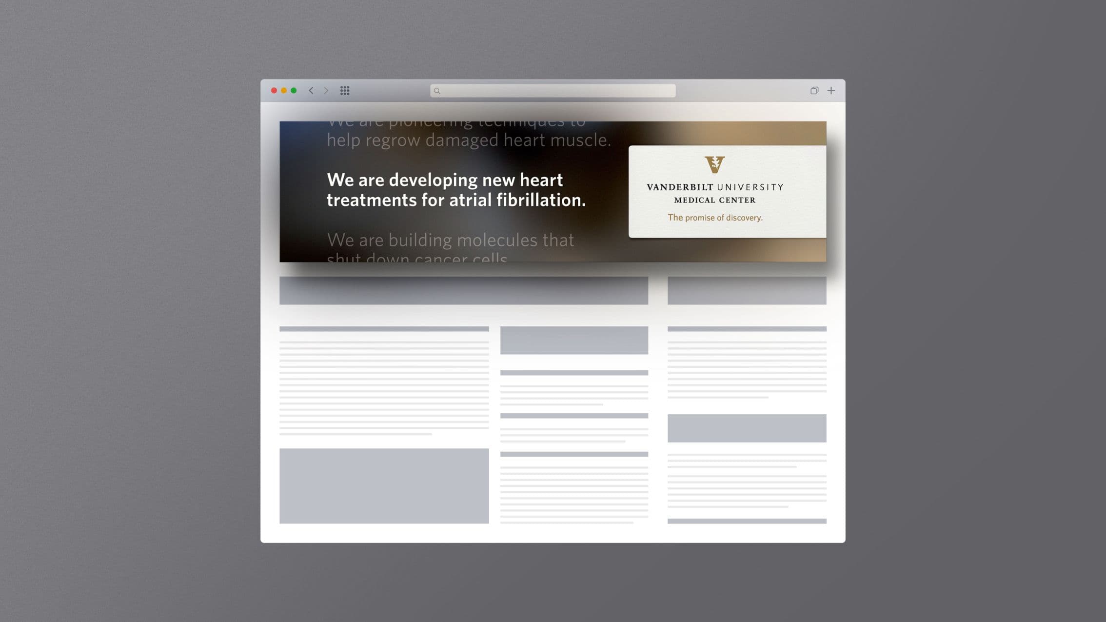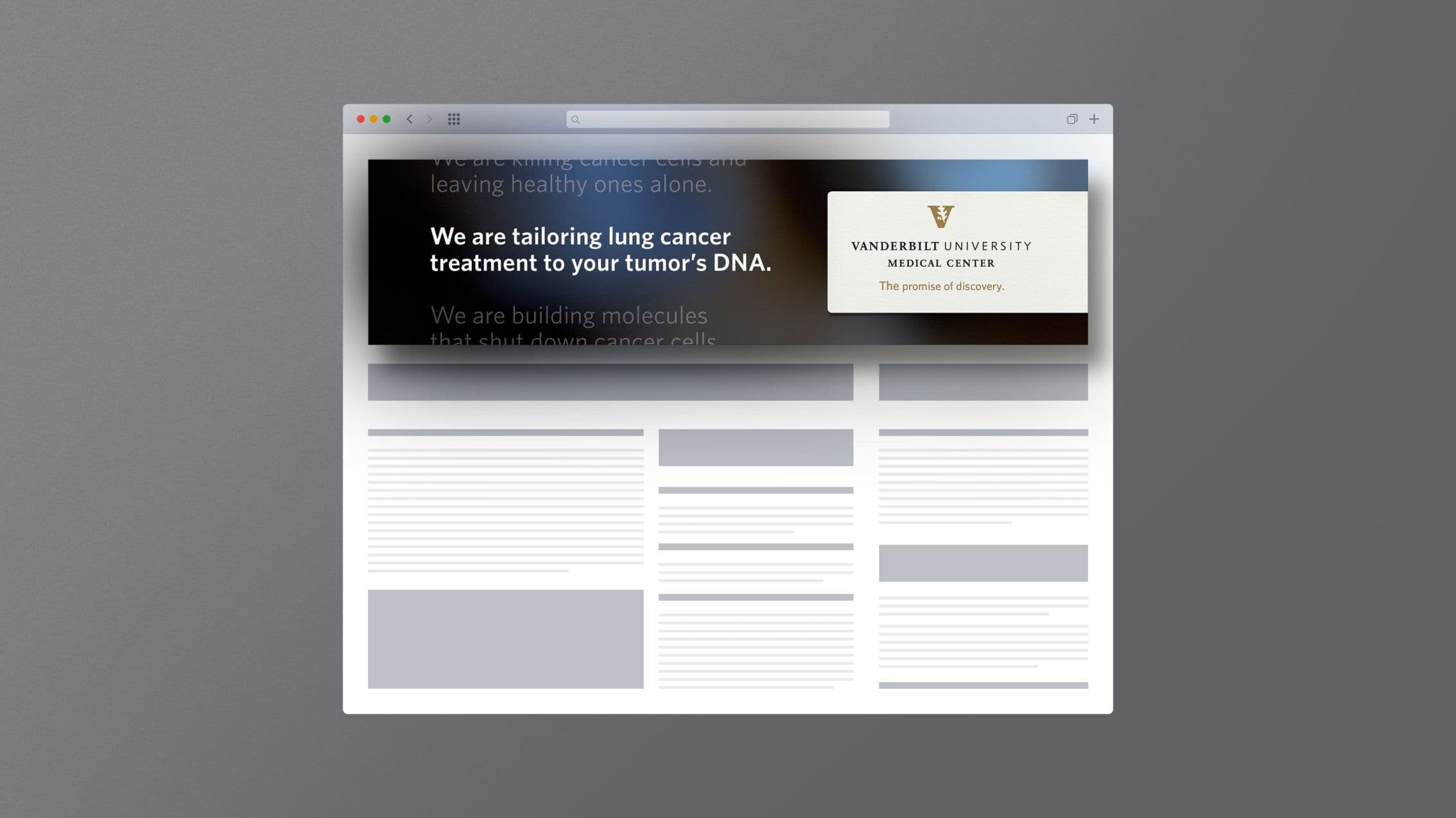 At Vanderbilt University Medical Center, discovery isn't just something that happens in a lab–it's a promise made to every patient. The Promise of Discovery national campaign was created to reflect the hope and possibility that come from being cared for by one of the world's leading academic medical centers. With access to one of the largest DNA databases on the planet, Vanderbilt is pioneering treatments that are as unique as the individuals they're meant to heal. Benefitting patients locally, regionally, and around the globe. That's the Promise of Discovery.