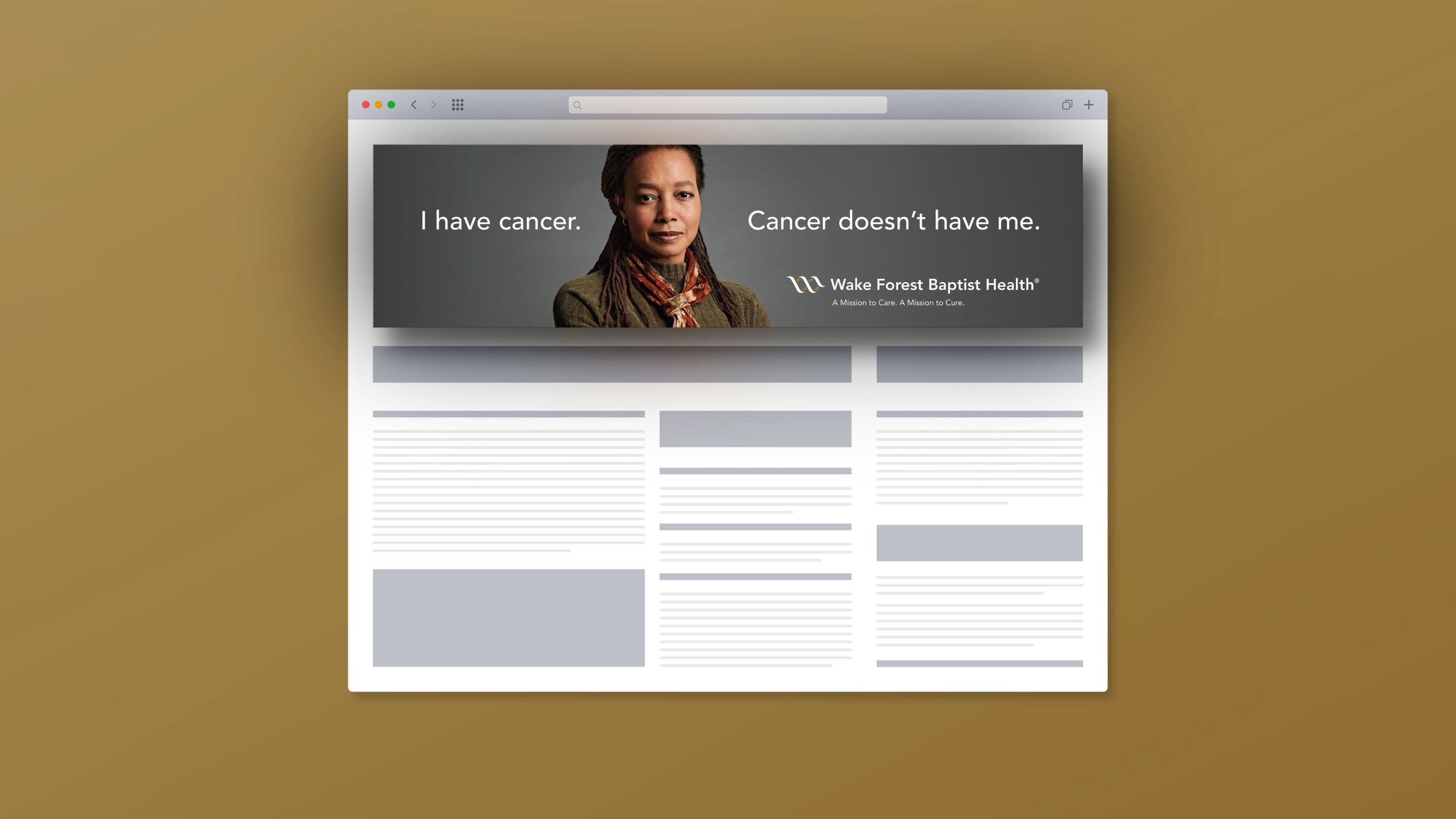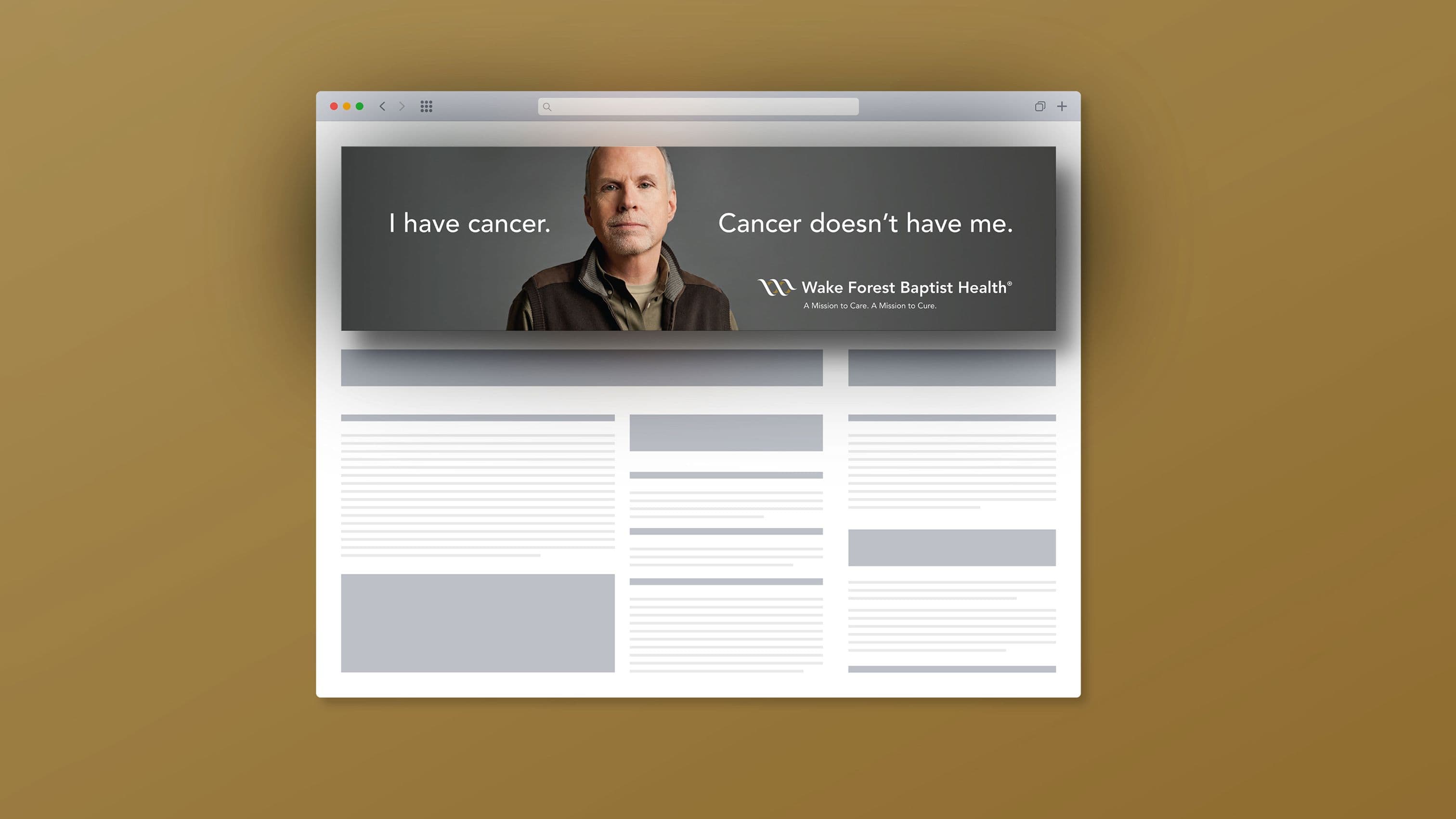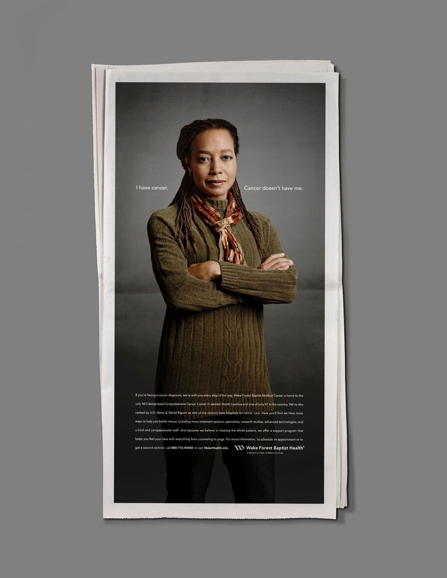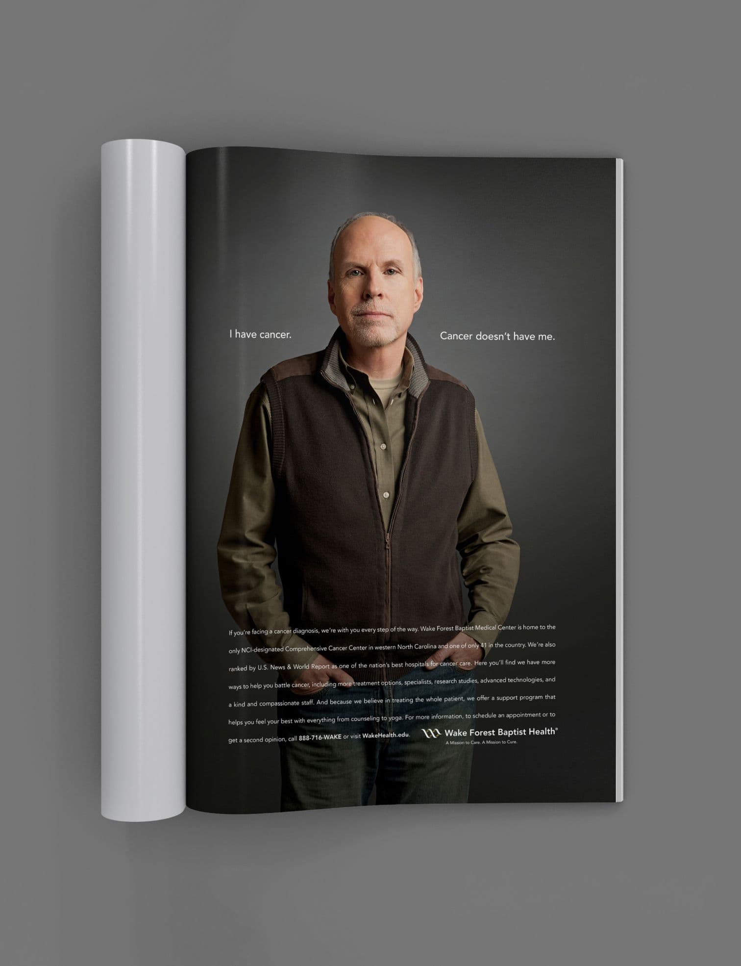 We set out to create a cancer campaign that offered more than information—it offered strength and confidence. Centered around the powerful line, "I have cancer. But cancer doesn’t have me," the campaign was designed to give patients a sense of control in the face of a life-altering diagnosis. As home to the only NCI-designated Comprehensive Cancer Center in western North Carolina, Wake Forest Baptist delivers nationally recognized care with compassion, innovation, and hope. Our campaign highlighted not just advanced treatments and cutting-edge research, but also the human side of healing—from support programs to personalized therapies—reminding patients that they are never alone in their fight.