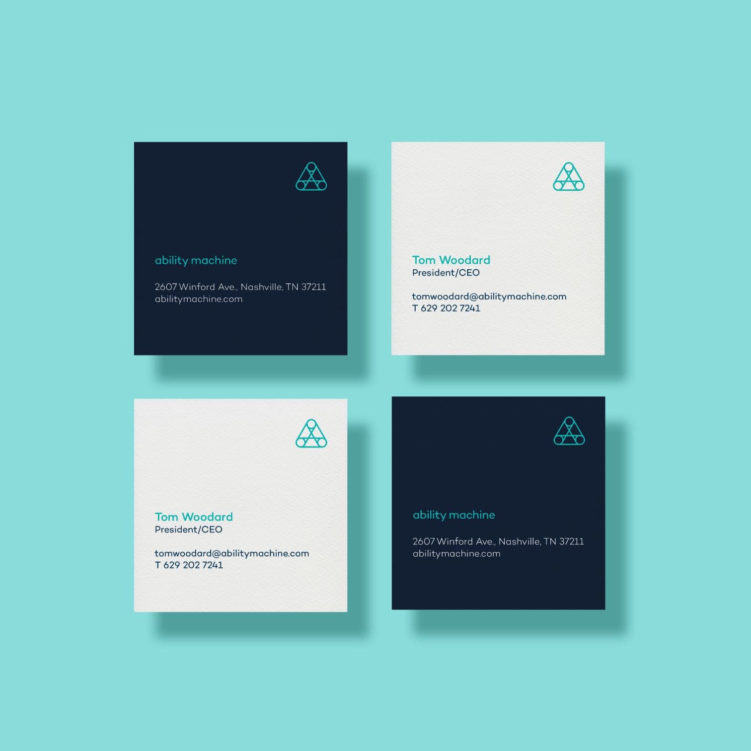 The Ability Machine logo was designed to convey the ideas of growth, connection, and balance. The triangular form is meant to subtly evoke the idea of the Holy Trinity while simultaneously conveying the notions of strength and stability. The interconnected shapes illustrate the relationship between thinking, creation, thriving and collaboration. Together, these elements reinforce the agency’s mission to create pathways for neurodivergent talent to grow, express ideas, and find their place in the creative world.