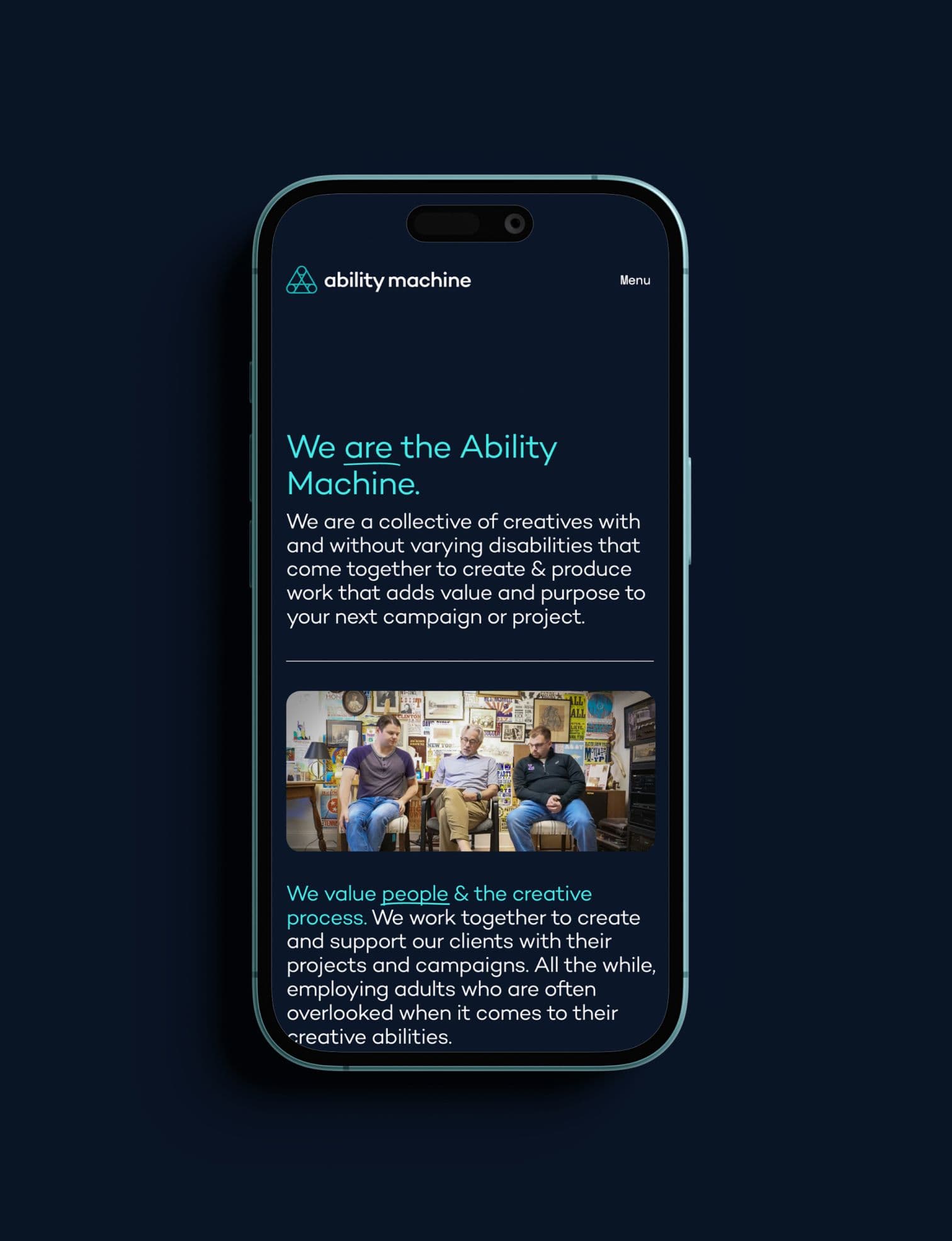 Along with the branding, we built a website that is fully accessibility compliant and true to the Ability Machine’s mission. The site was designed to meet WCAG standards while showcasing their creative work and sharing the story behind the company. The result is a clean, user-friendly platform that highlights their capabilities, celebrates neurodiversity, and strengthens their brand presence.