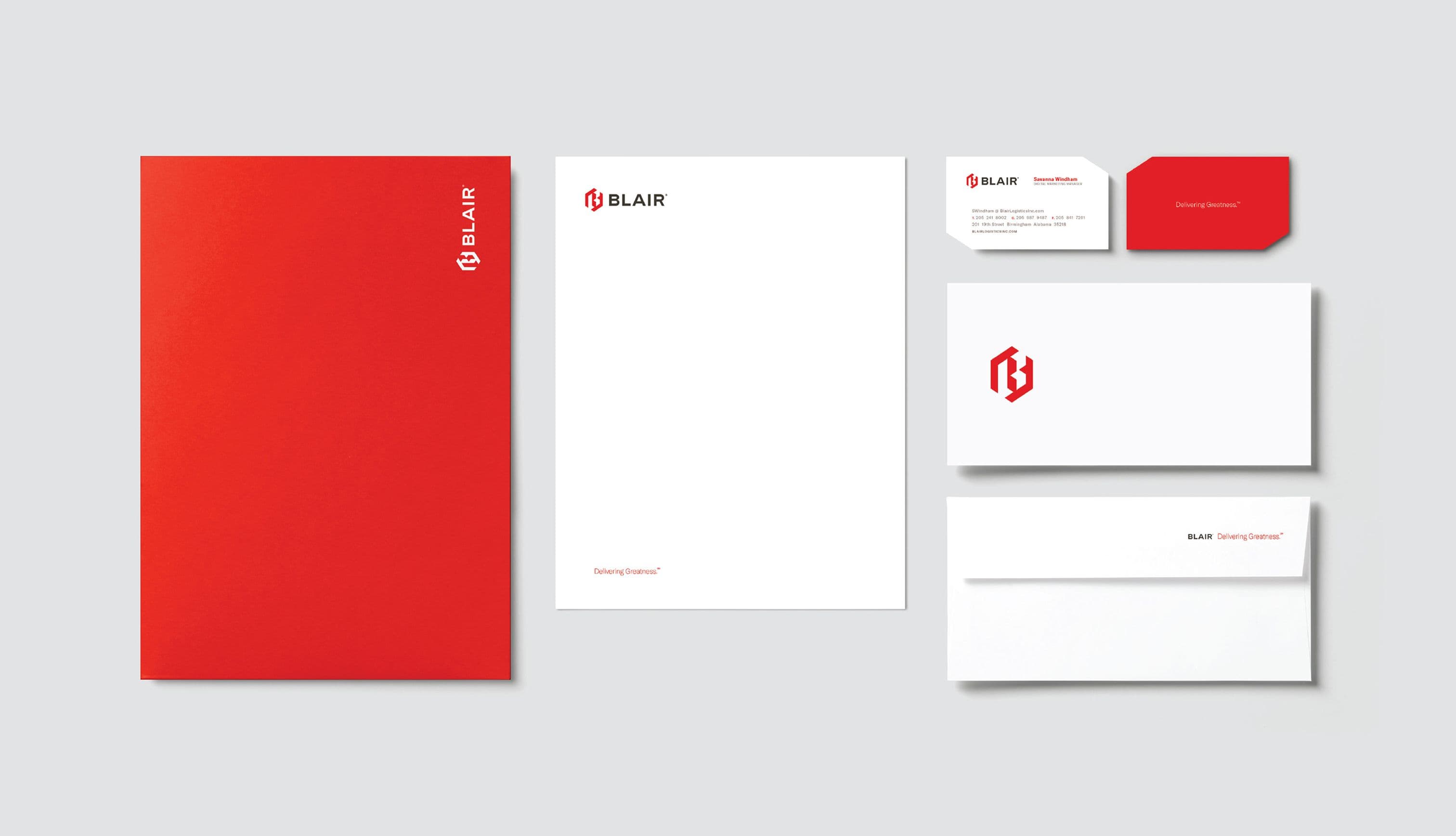 Blair Logistics—grown from a 15-truck startup to a network of 800+ owner-operators—partnered with Lewis to modernize a brand that no longer matched its momentum or culture. Through in-depth discovery and stakeholder insights, we built a refreshed mission, messaging platform, and visual identity, introducing a refined logo system, bold design elements, and the unifying tagline “Delivering Greatness,” deployed across vehicles, digital platforms, and internal communications.