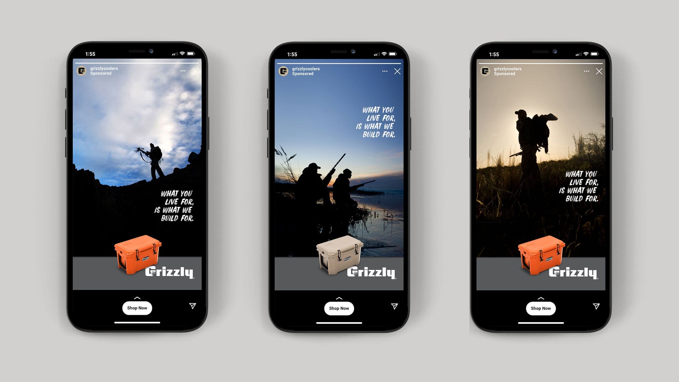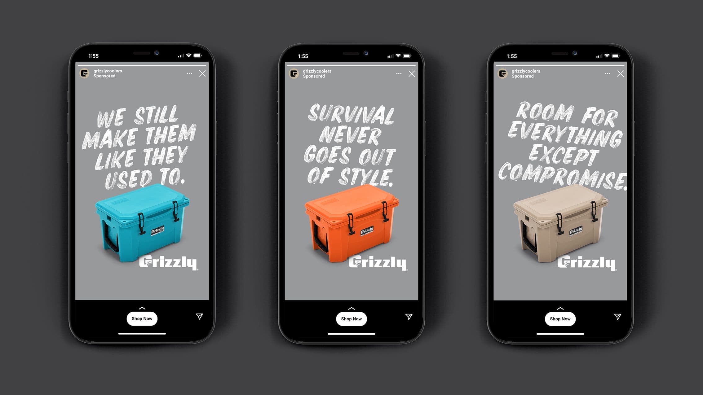 Grizzly was one of the early creators of rotomolded coolers with incredibly tough construction. In fact, it was one of the first companies whose coolers were certified IGBC Bear-Resistant. Grizzly’s products were deeply trusted by a tight circle of hunters and outdoor enthusiasts, but weren’t as well known as competitor Yeti in the larger consumer market. Grizzly asked us to grow the brand’s reputation and increase engagement in order to set the stage for future sales growth.