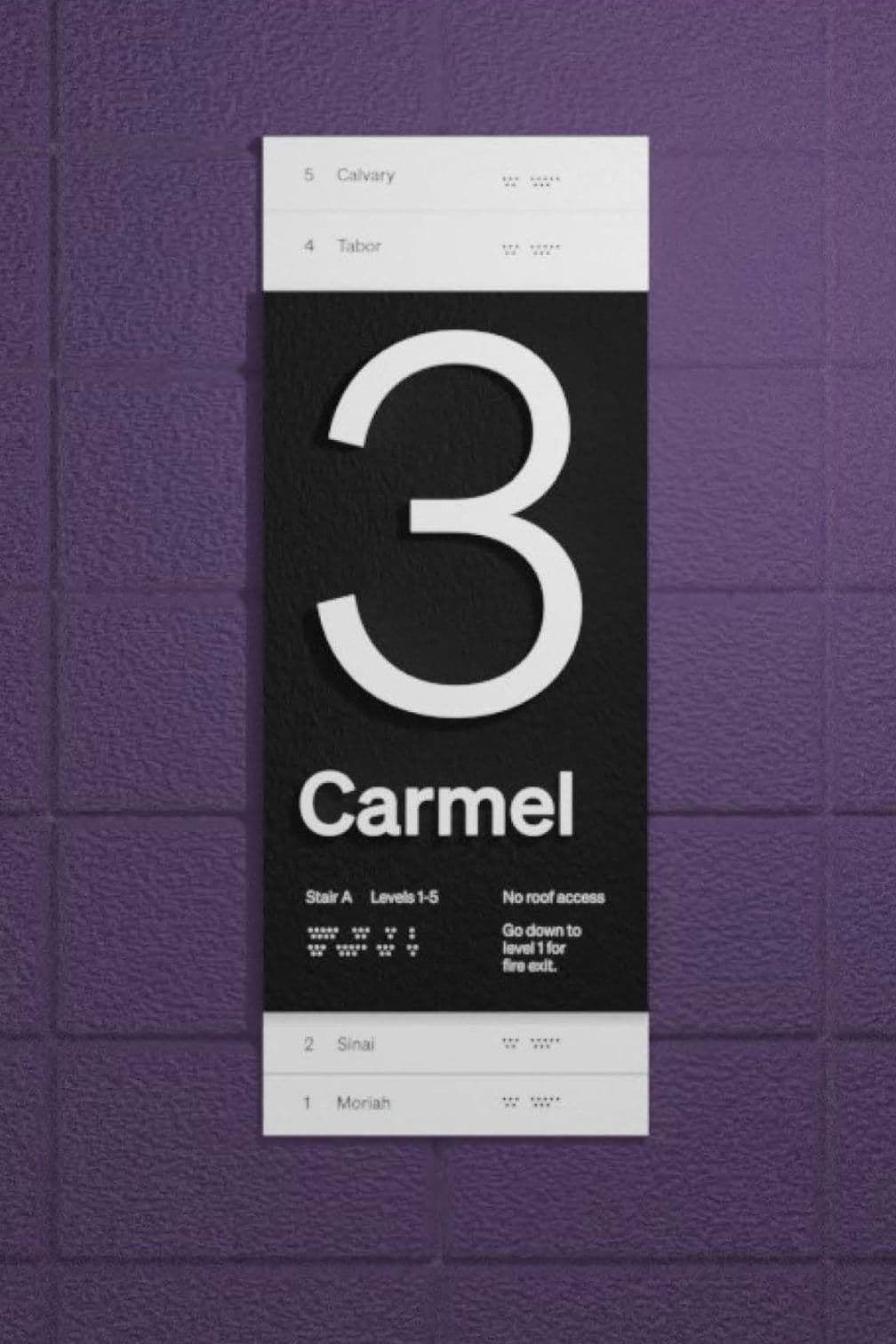 One of the most significant additions to the new Highlands College was its first-ever on-campus residence hall. With five floors, the dorms didn’t just require interior branding, but wayfinding that easily distinguished each of the floors. Drawing inspiration from the Bible, we named each floor after a different mountain where man encountered the Holy Divine, echoing the spiritual journey of the student. Distinctive colors, quotes, and minimalist, modernist patterns ensured that each floor was instantly identifiable as students acclimated to their new home.