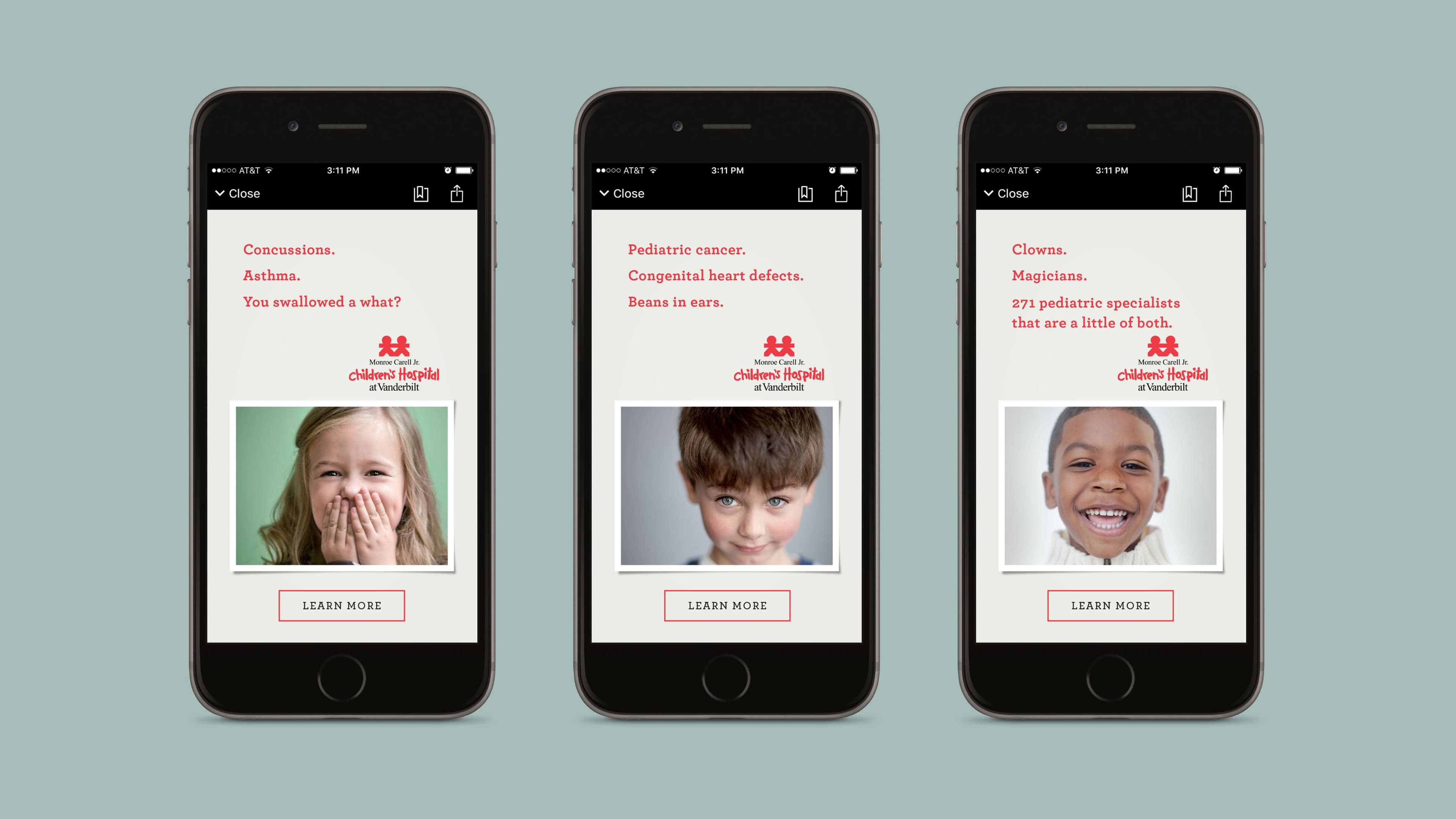 The Your Child’s Very Own Hospital campaign delivered measurable impact. It increased brand awareness across the region, strengthened trust among parents, and clearly differentiated Monroe Carell as the only hospital in Nashville built entirely around the needs of children. The campaign helped drive an increase in pediatric ER visits and specialty care appointments, while also improving perception metrics tied to expertise, compassion, and overall preference.