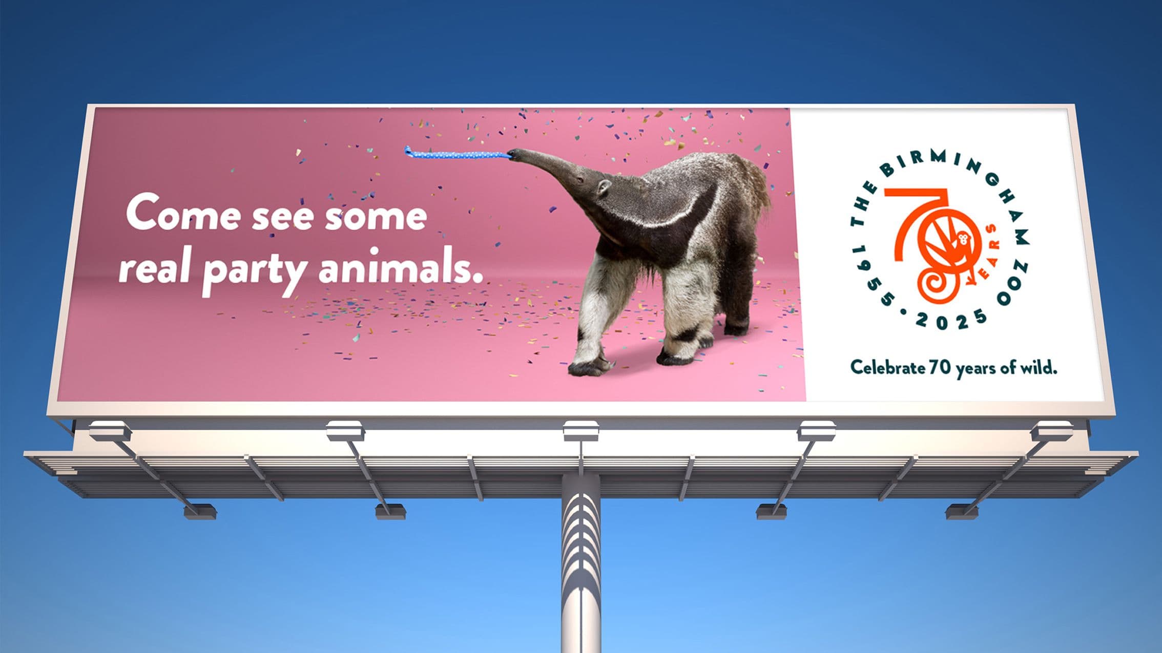 The Birmingham Zoo came to us with a simple ask–create a logo mark for their 70th anniversary. What they ended up getting was a year-long integrated campaign celebrating the biggest birthday in Birmingham and inviting everyone to get in touch with their inner party animal.